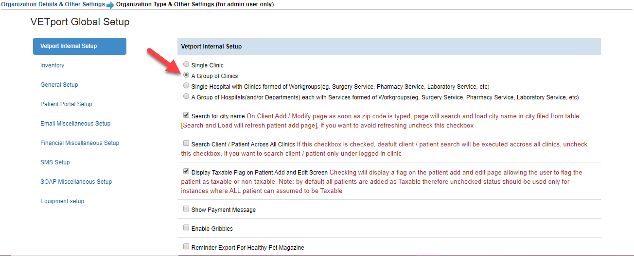 In the Group Name select the Clinic Group to which you want to add that clinic and hit the "Save" button at the bottom of the page.