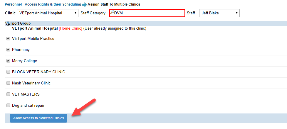 5. Click on Allow Access to Selected Clinics.