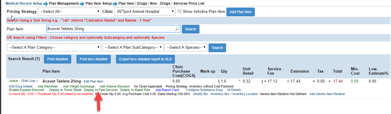 3. If the link is red and reads Hide in Past Services the plan will NOT show up on the Past Services List