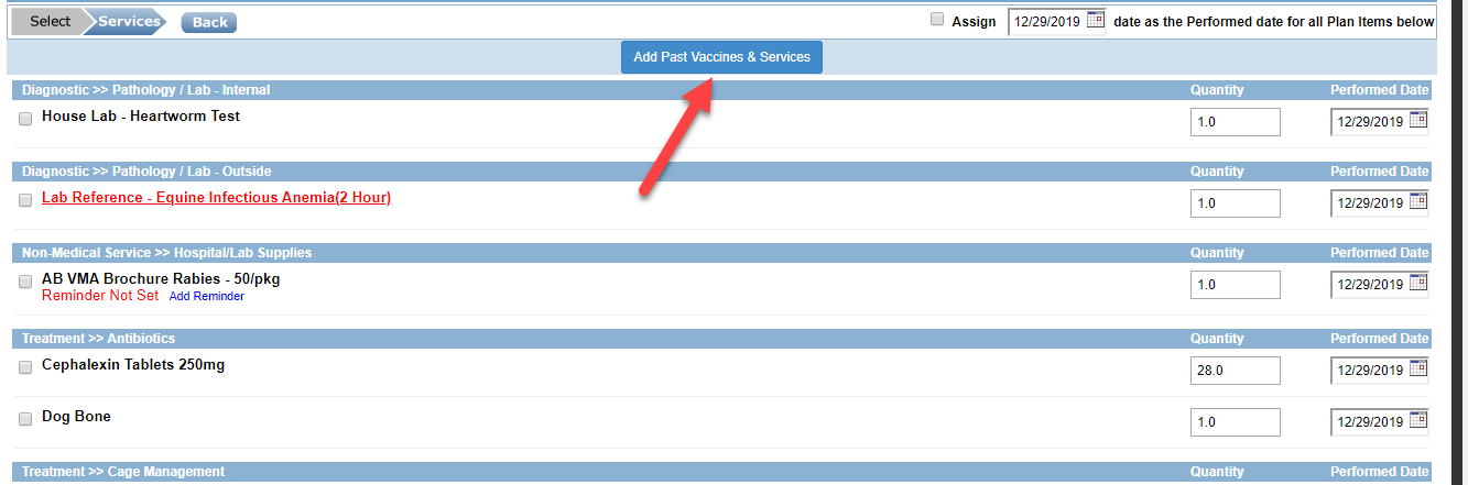 To have plan items appear on the Past Vaccinations & Services page you need to turn on a flag under each plan item