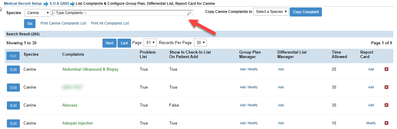 8) Define any associated Pet Health Record with the complaint (the add / modify buttons are displayed if the user makes the "Display Patient Report Card" as true.